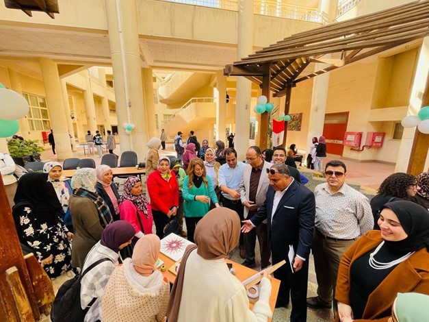 حيث رحبت أ.د./ رشا رفاعي بالسادة الضيوف من إدارة رعاية الشباب بالجامعة.ثم قامو بعمل جولة داخل الكلية لتفقد و رؤية الكثير من الأشغال اليدوية التي قام بتنفيذها طلاب الكلية و التي نالت إعجابهم جميعا وسط سعادة كبيرة من الطلاب المشاركين.