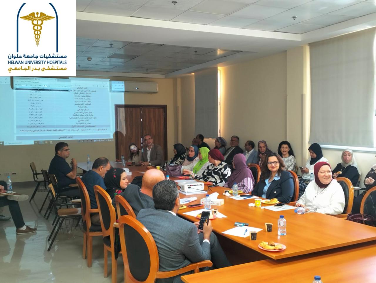 As part of Helwan University's ongoing commitment to monitoring and improving performance within its medical facilities, the Council of Badr University Hospital convened on Sunday, August 3, 2025. The meeting was chaired by Prof. Dr. Rasha Omar Refai, Dean of the Faculty of Medicine and Chair of the University Hospitals Board of Directors, and attended by Prof. Dr. Wael Omar, Executive Director of University Hospitals; Prof. Dr. Mohamed Ezzat, Acting Director of Badr University Hospital; along with a number of heads of medical departments, directors of technical and administrative departments, nursing units, quality units, and infection control units.